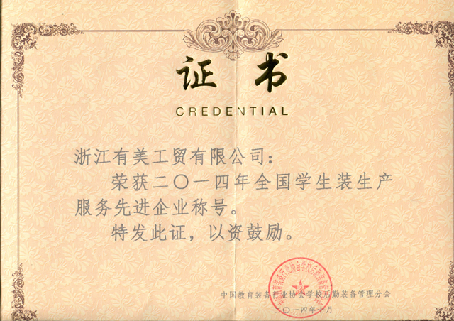 浙江有美工貿有限公司是一家專業生產與銷售高品質團體服飾的企業,提供全品類校服、工作服等線上線下訂購平臺,品類包括四季制服、運動服、沖鋒衣等。公司占地面積8000平方米,現有職工500余人,各類設備200多套,設備年生產校服能力50萬套。企業資信等級連續九年被評為AAA級,公司已通過了ISO9001國際質量管理體系認證、ISO14001環境管理體系認證,自2001年起連續14年為“浙江省教育廳校服生產定點企業”。